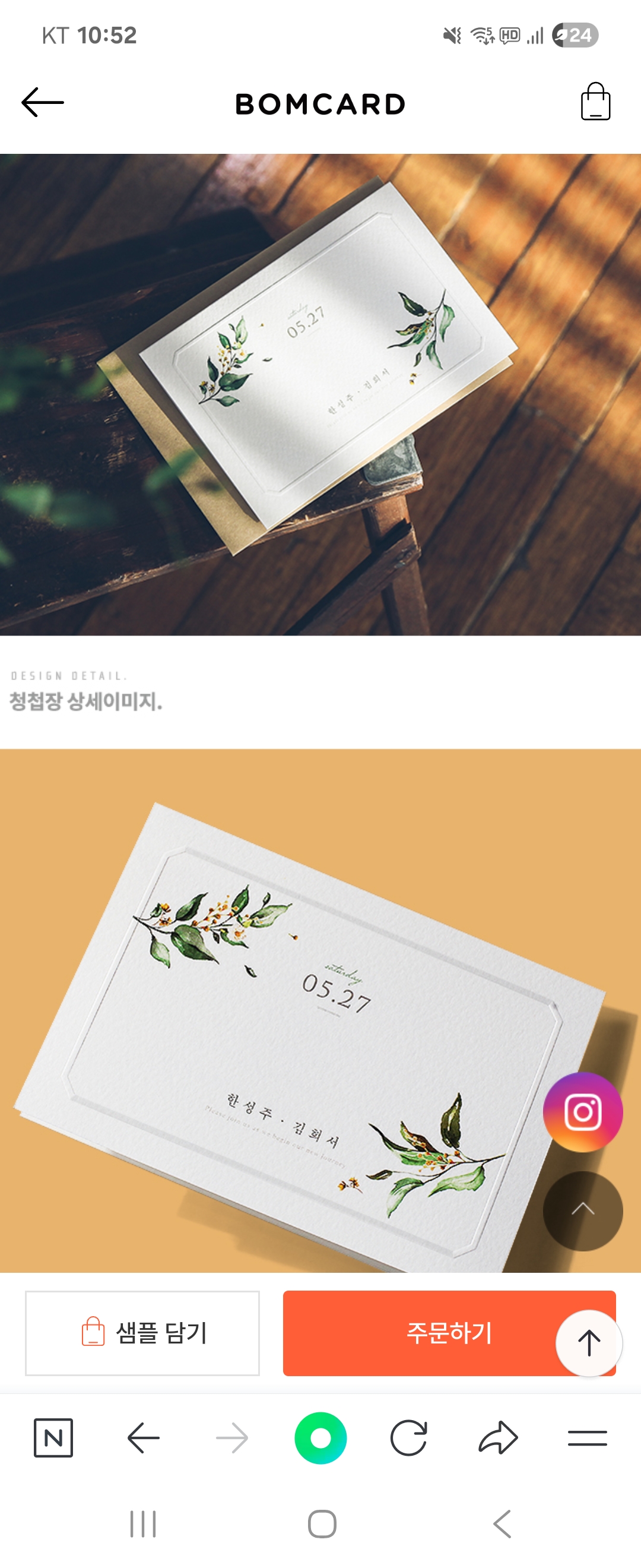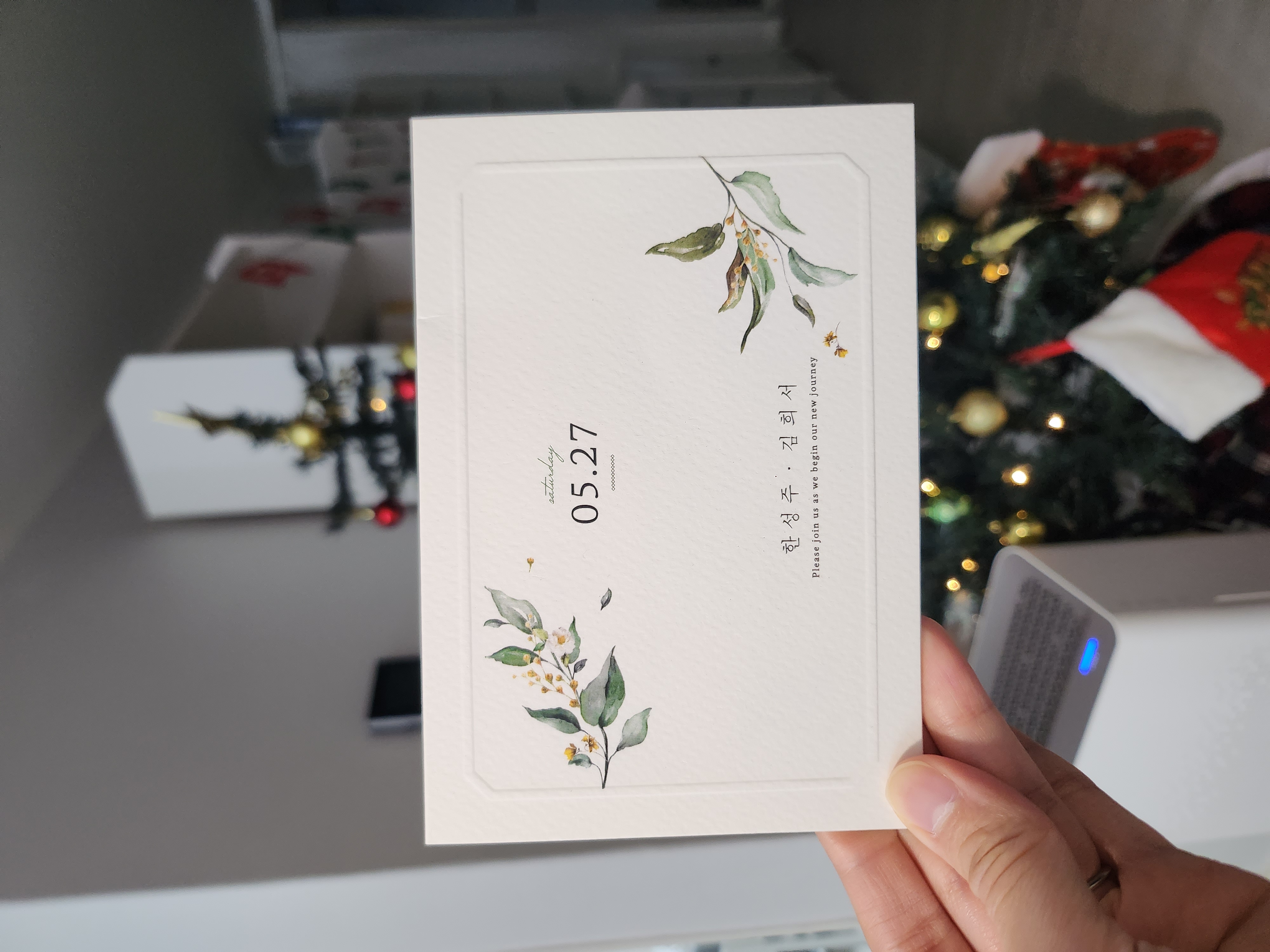 가격대도 합리적인 편이라 예산 안에서 충분히 원하는 디자인을 선택할 수 있었어요.또 하나 마음에 들었던 점은 샘플 구성이었어요. 실제 종이 질감이나 색감, 인쇄 느낌을 직접 확인할 수 있어서 “실물 받고 실망할 일은 없겠다”는 안도감이 들었고, 샘플 배송도 생각보다 빨라서 전체 일정 잡는 데 도움이 됐어요>_<